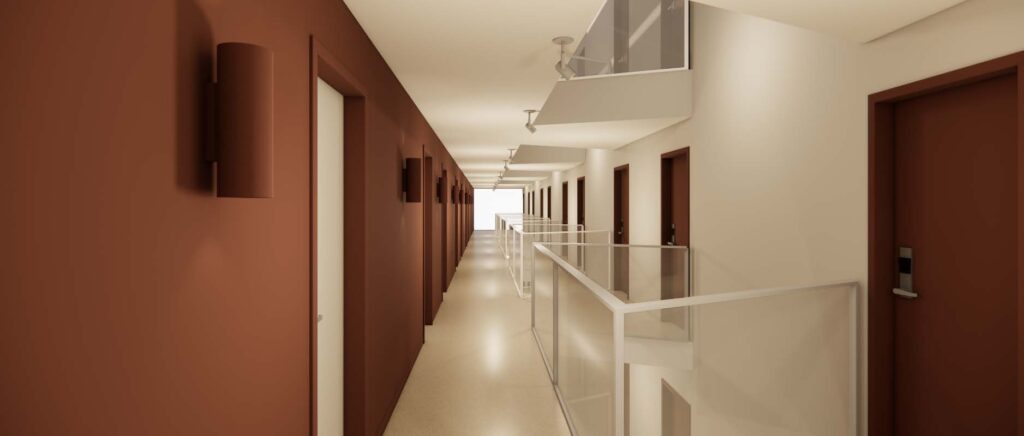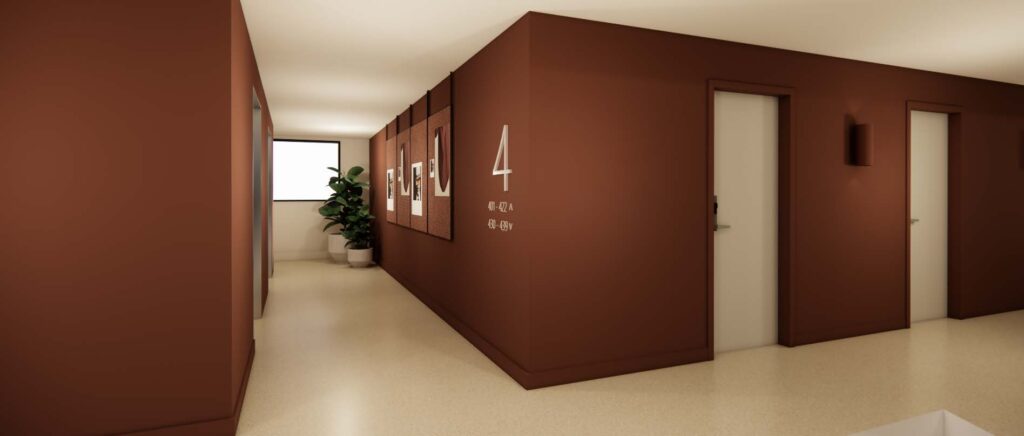 Corridor refresh, including wall and floor finishes, signage, and lift lobby pinboards